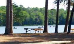 Trap Pond is one of my favorite parks for a day trip or for camping. There are lots of trails, a nature center, rental boats and playgrounds for the kids. One of our favorite spots is on the bridge, where the dam creates the waterfall.